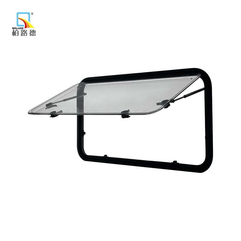 Glass: Double-glazing acrylic, UV resistant, with a flat or convex outer surface. Available in black or light gray.