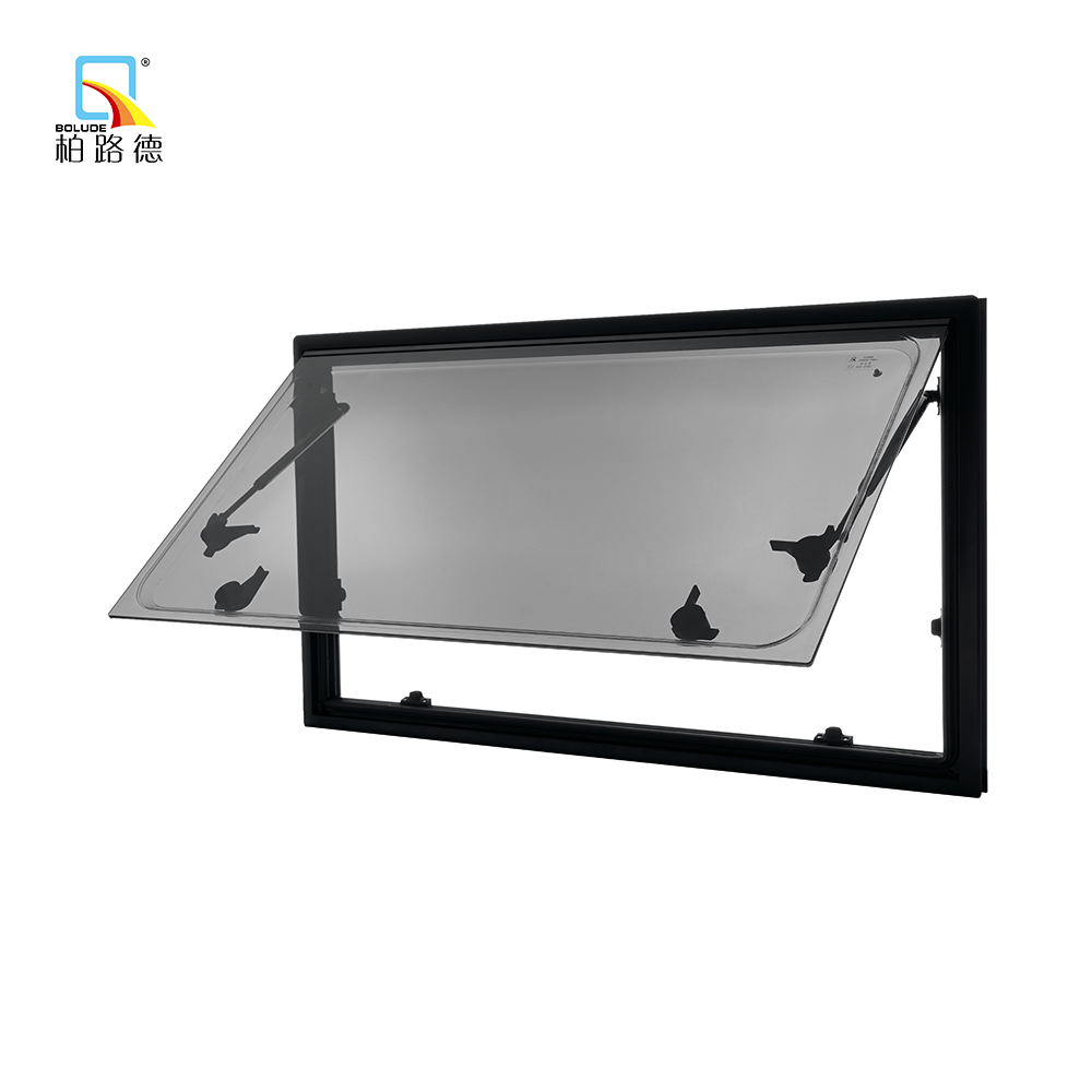Glass: Double-glazing acrylic, UV resistant, with a flat outer surface. Available in black or light gray.